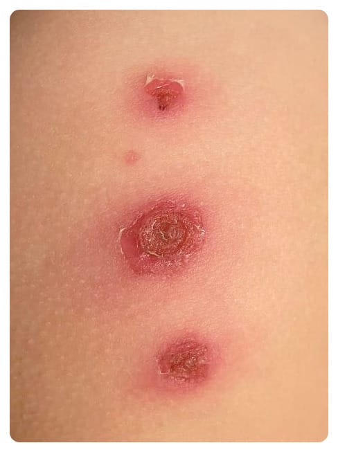 “Parece como si la hubieran quemado con un cigarro. Al principio eran solo unas picaduras de mosquito y una herida en la mano por un golpe. Pero ahora tienen una costra amarillenta y sueltan un poco de líquido. ¿Qué puede ser eso, si la niña está bien, no tiene fiebre y está tan activa como siempre?”